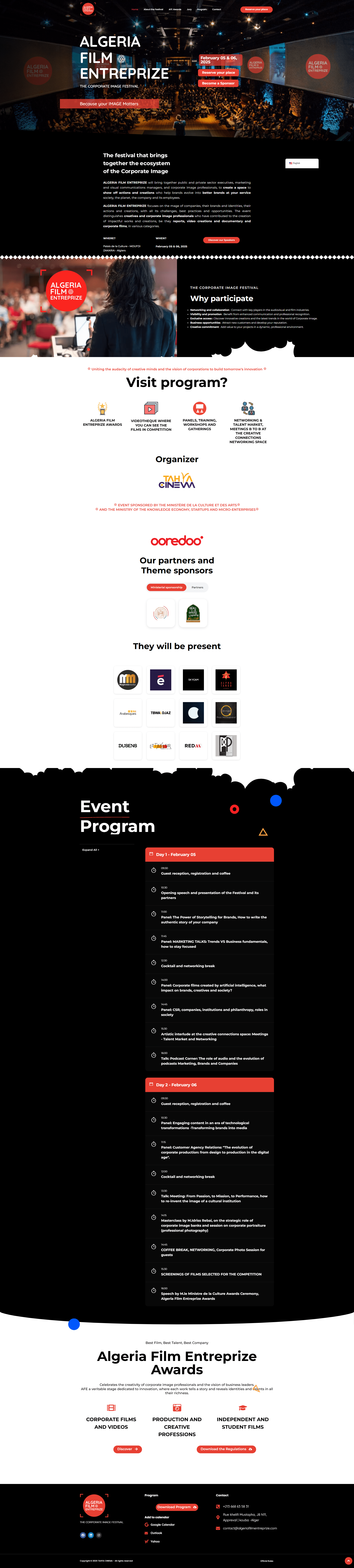 Architected the complete digital ecosystem for Algeria’s premier corporate film festival. Developed a multilingual website with integrated QR-based registration system that processed 200+ attendees efficiently. Created a secure film submission platform with jury evaluation interface. Implemented payment processing for registrations and sponsorships. The robust system maintained 99.9% uptime during the high-profile event attended by industry leaders and government officials, including the Minister of Culture.
