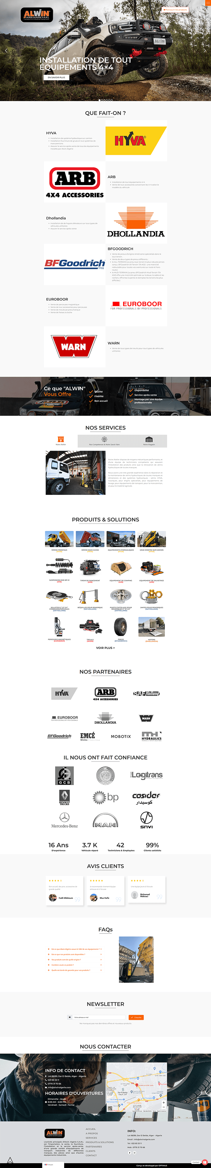 Developed a comprehensive website for a transport and industrial equipment provider, featuring product data automatically scraped from multiple suppliers. Created a responsive design that showcases their 4×4 equipment offerings with detailed specifications. Implemented search functionality and category filtering to help visitors quickly find specific industrial equipment.